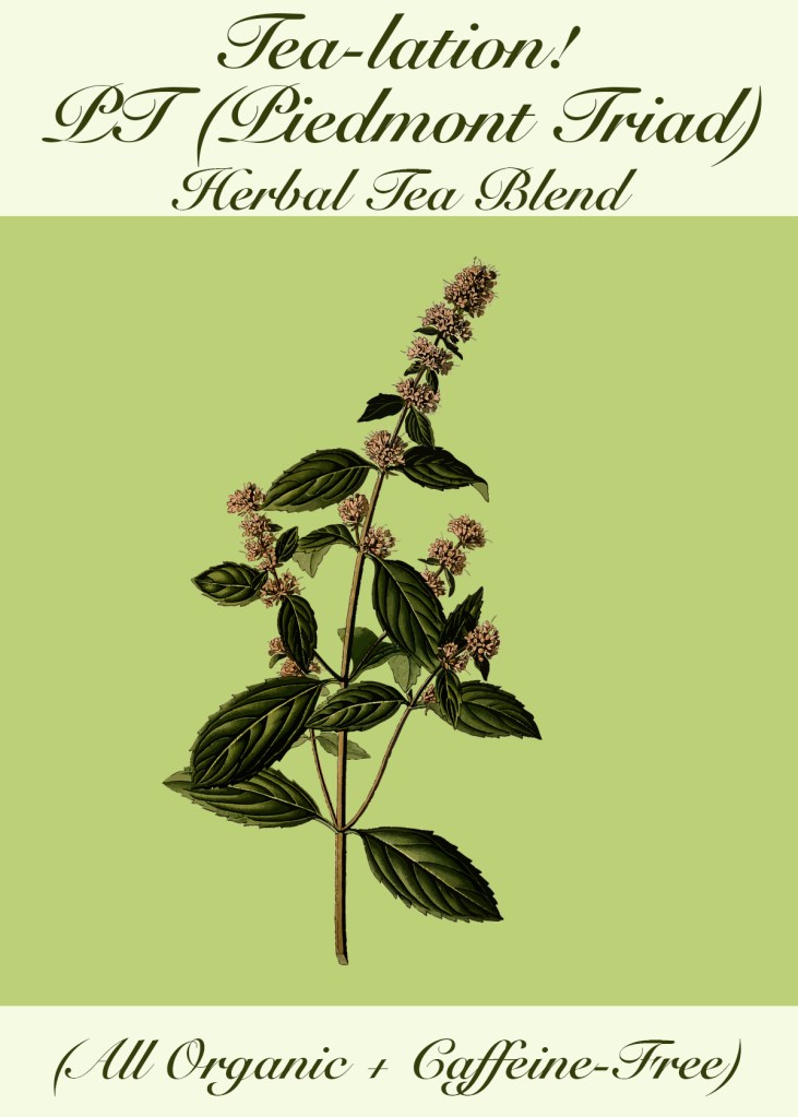 PT (Piedmont Triad) Herbal Tea Blend – This ALL Organic minty must-have is a medley of mints that represent the 3 special cities in the PT (Piedmont Triad) of NC (North Carolina) – WS (Winston-Salem), GSO (Greensboro), and HP (High Point). Enjoy this soothing and refreshing herbal tea blend that subtly sweetens your palette and naturally aids digestion. Subtle hints of lemon and mint.