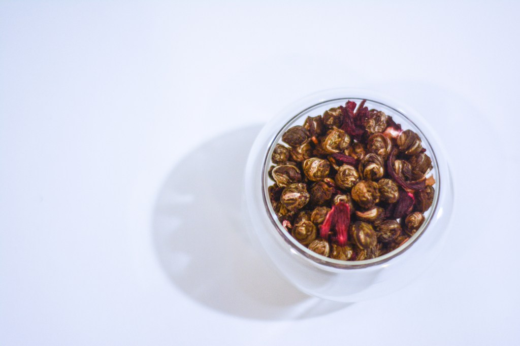 TL! STRAWBERRY HIBISCUS GREEN TEA BLEND: Jasmine green tea, organic hibiscus, and organic strawberry flavor extract.