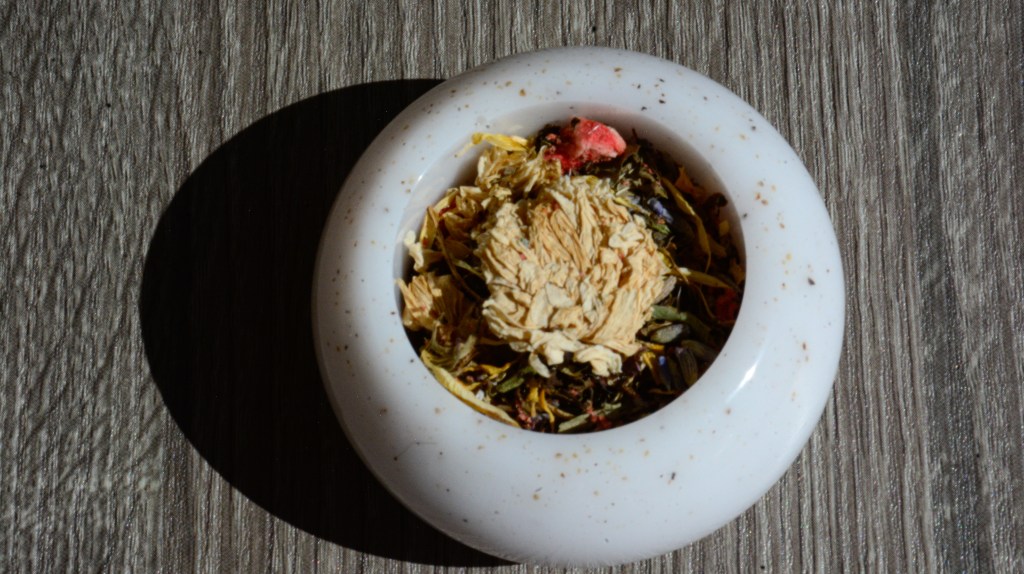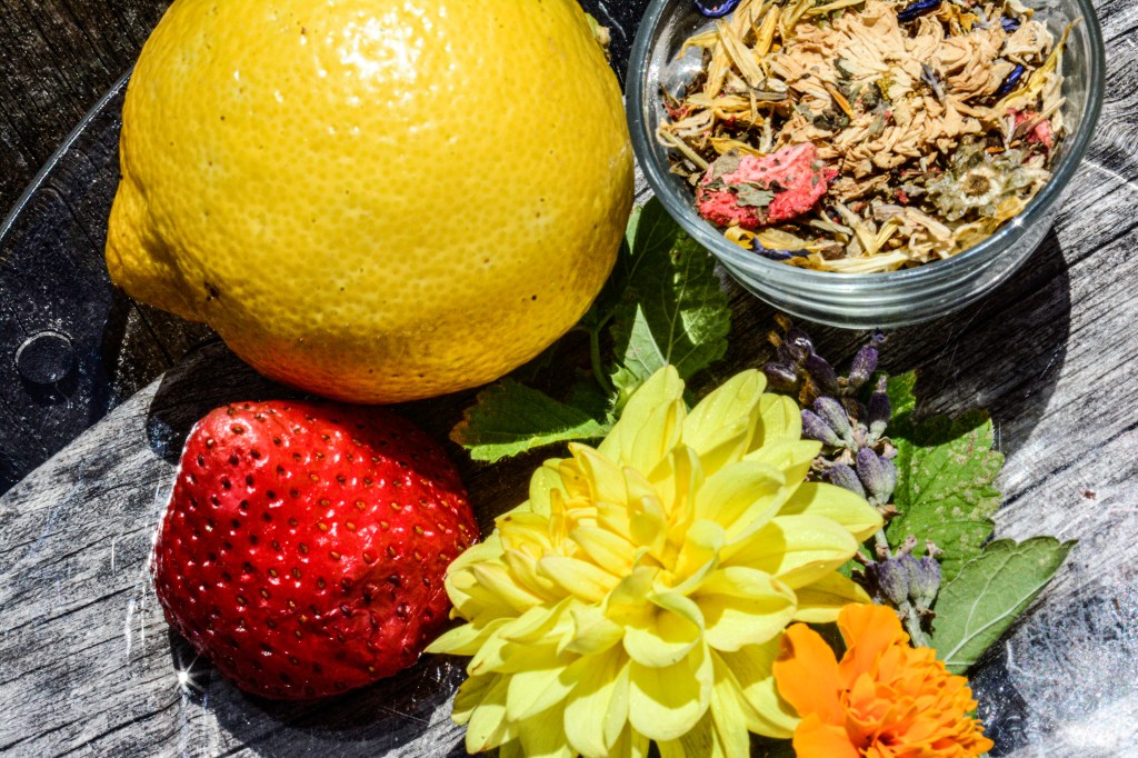 “It’s the epitome of happy, lingers like a lemon drop, and tastes like liquid sunshine, but won’t keep you up at night. If you like the lemony, this will brighten your day (and eve),” shares Susan, smiling “and it makes me happy to blend, steep, share, sip, and savor it!”