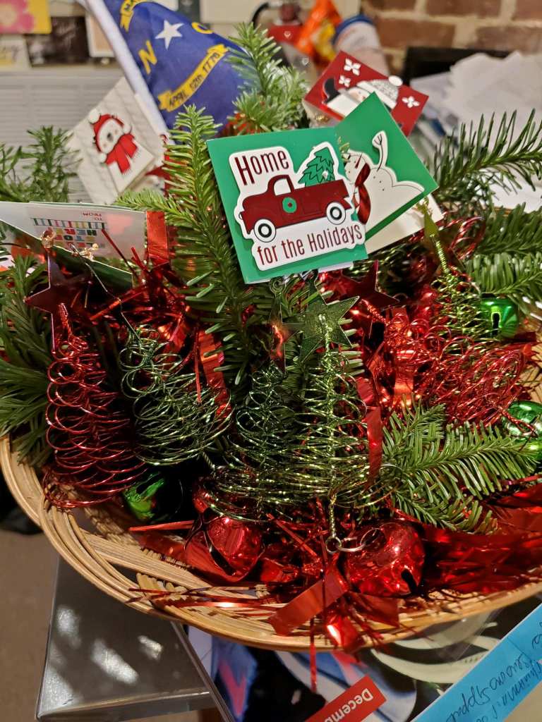 You’ll find an assortment of TL! teas, handmade Christmas tree earrings, and rosemary sprigs here that make ideal stocking stuffers and gifts this season, so stock up!