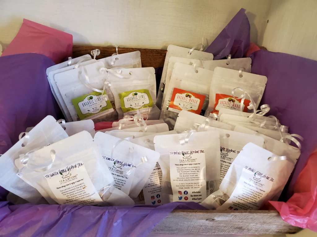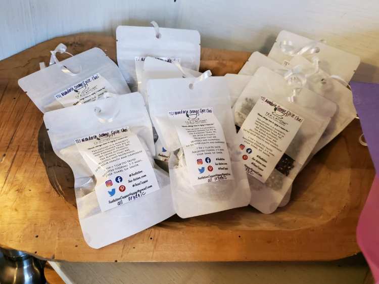 Here are the blends available this December 2021 at Sophisticated Florals at 816 Burke St. in downtown WS, NC: TL! Petals Please Herbal Tea Blend, TL! Vanilla Honey Herbal Tea Blend, TL! Mandarin Orange Spice Chai Tea Blend, Mango Green + Black Tea Blend, and Lime Herbal Tea Blend.